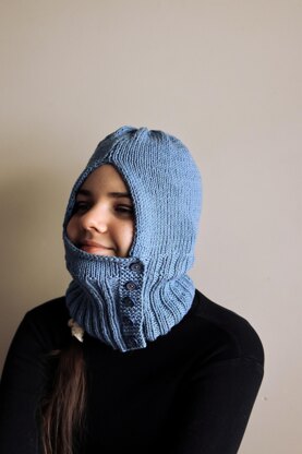 This balaclava is knit all flat. There is no knitting in the round at all.