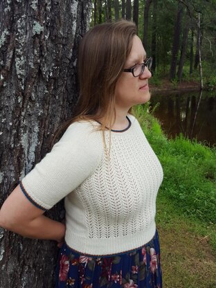 Land Girls meets the high desert in this slightly vintage-inspired tee with a simple 4-row lace pattern reminiscent of sagebrush. Made it in a wool/ silk blend as shown it's a perfect transitional-weather layering piece. Or make it in a cotton-linen blend for a warm-weather tee.