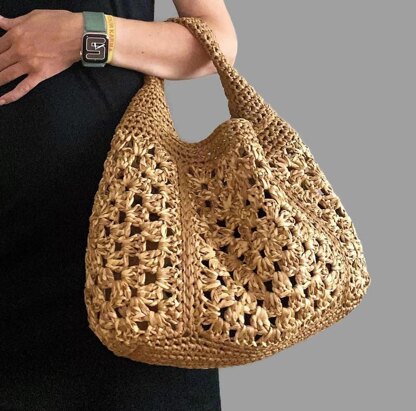 Patten includes all necessary information for bag making. It is very detailed and has a lot of step by step photos. On the last page of the PDF file you will also find links to the videos on my YouTube channel. LANGUAGE: English LEVEL: Easy FINISHED MEASUREMENTS Width: 19 in (48 cm) Height: 9,5 in (24 cm) Depth: 5,5 in (14 cm) MATERIALS Crochet hook: 6 mm (US J-10) USED Yarn Weight: 100% Raffia Paper Name: Bettaknit Colour: Natuaral, Caramel Quantity: For Bag: 1 ball of Natural color (about 50 meters left (55 yards)), 2 balls of Caramel color. Each ball 100 grams (250 meters / 273 yards). Totally for 1 bag – about 700meters/764 yards. If you have any questions please dont hesitate to contact me.