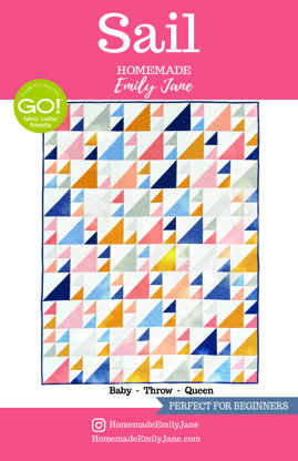 The Sail Quilt Pattern was designed to be easy, quick, and great for beginners! This modern Half Square Triangle quilt pattern includes instructions for 3 different quilt sizes, as well as alternate instructions for using a fabric cutting machine such as AccuQuilt. The pattern is filled with easy to follow diagrams for every step of the pattern, and includes instructions and coloring sheets for Baby, Throw, and Queen Bed quilt sizes.
