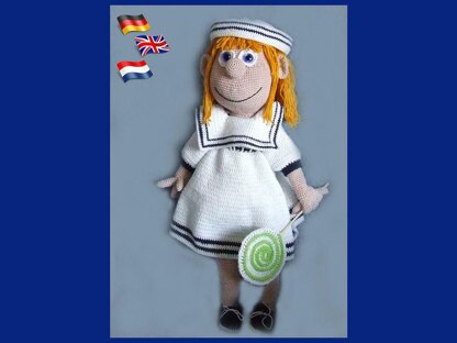ENGLISH * Simple pattern if you know how to crochet Magic Ring, chain , slip stitch, single crochet, half double crochet and double crochet. * This manual is available in English, Dutch and German. * The Doll is 40 cm (hook size 2). * The manual is very detailed and contains many photos.* If you have any problems and / or questions about my instructions please contact me by email. Attention! This is a crochet pattern, not a finished product
