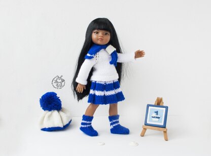 Materials needed • 4 double-pointed needles and circular needles in a size suitable for the yarn weight you are using. I recommend using needles a size or two smaller than the yarn calls for, to produce a firm fabric. Needles size size 2,5 (3mm) , size 4 (3,5mm). • White colored yarn Cascade 220 Fingering color white (8505) (100% wool 250 meters / 50 grams) • Biue colored Paintbox Yarns Simply DK color Sailor Blue (139) (100% acrylic 276 meters / 100 grams) • White colored yarn Paintbox Yarns Simply DK color Paper White (100) (100% acrylic 276 meters / 100 grams) for a jacket • 3 Buttons for the jacket • Yarn needle • Stitch holder