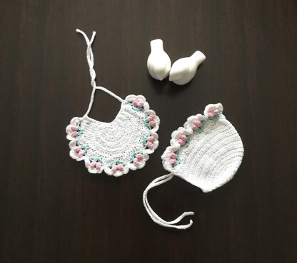 Sakura Baby Bib & Bonnet Set is a beautiful design with lovely border.