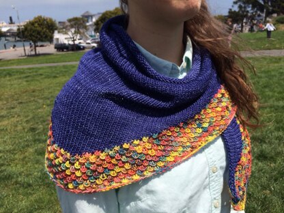 This summer scarf pattern is a fun, quick knit which can also be worn as a small shawl.