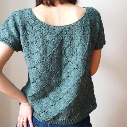 Finished bust circumference: 88 (100, 112, 125, 137, 150) cm / 34½ (39¼, 44¼, 49¼, 54, 59)” - to be worn with 10-17.5cm / 4-7” of positive ease. Model has 81cm / 32” bust, stands 157.5cm / 5'2" tall and is wearing a size 2.