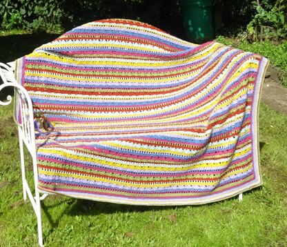 The Sandlebridge Stripes Blanket was designed for the Cheshire Fibre Festival 2016 and is named after the lane where the venue was located.