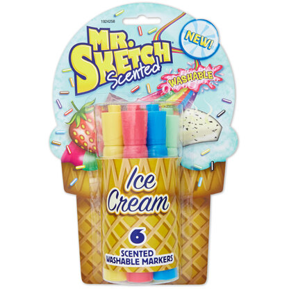 Sanford-Mr. Sketch Scented Washable Marker Set: Chisel Ice Cream. Each of these water-based markers comes with its own fun scent! Perfect for drawing both thick and thin lines and great for young artists! This package contains six 4-1/4 inch long markers in assorted colors. Conforms to ASTM D4236. Made in USA.