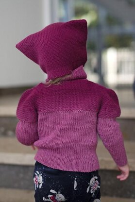 “Sanft” can be translated by ‘gentle’, ‘soft’ or ‘mild’. The long, gentle color change of Zitron Infinito is perfect for this jacket. It is worked in one piece, staring with a top down yoke, then bottom and sleeves are worked across. This way, the right side is a touch lighter than the left side. The jacket is worked with front loop only slip stitches. They make it soft and a little elastic.