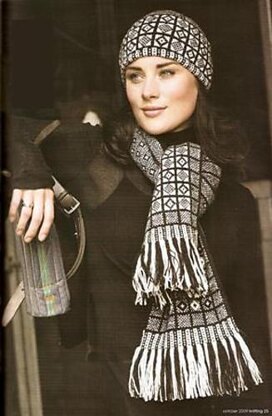 This pattern is for both hat and scarf. They incorporate traditional Sanquhar patterns and are knitted in the round, making the scarf double sided. The hat is elasticated at the bottom edge and so there is some adjustment possible on the band circumference.