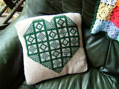 This cushion uses the traditional Sanquhar Duke pattern, although the colour scheme and surrounding motif uses a more modern twist on the old pattern.