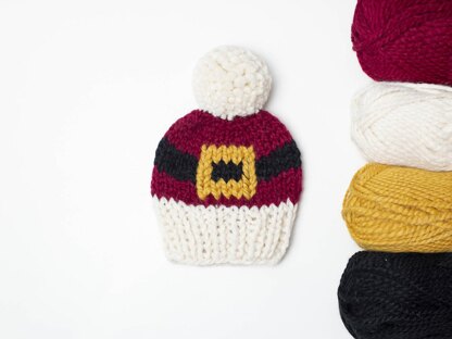 Our adorable santa belt hat is the perfect knitting project for the upcoming Christmas holidays. Available in the following sizes: Newborn, 0-3 Months, 3-6 Months, 6-12 Months, 1-3 Years, 4-12 Years, Women. The hat is made with Lion Brand Wool Ease Thick & Quick yarn. Uses duplicate stitch to complete the belt.