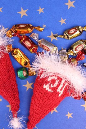 Cute little Santa hats that can be filled with surprises as an Advent Calendar. They are quick to knit, and no seaming is involved. From the bobble to the brim, they are knit in one piece. They can be made with or without numbers, a chart for the numbers is included in the pattern.