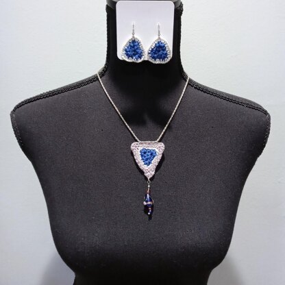 The Sapphire Granny Earring and Pendant set are sure to turn some heads! Using earring hooks, jump rings and a very small amount of crochet thread or embroidery thread, both the earrings and pendant can be made in a single evening!