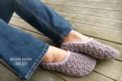 The Sarah Slippers are so perfectly soft and cozy! They stitch up super quick and make a great gift for yourself or someone special. A pretty textured shell pattern is used throughout to make them plush and warm.