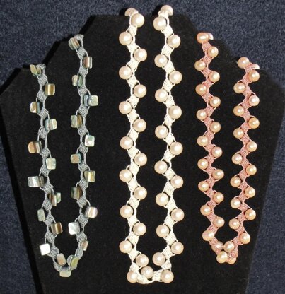 This design is handy for the medium-sized (8mm) beads with small holes most of us can’t resist buying but which get buried in our bead stashes because they’re too unusual for standard stringing and crocheting. It's also one of my most popular classes in my local yarn shop.