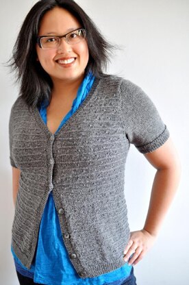 Sauble is a light, comfortable cardigan perfect for layering. The short sleeves and V-neck are easy to wear over your favourite T-shirts and dresses. The Wildflower Knot stitch is elegant and fun to knit, and this cardigan is a great way to use just a few skeins of sock yarn. Sauble is knit from the bottom up, with the body worked flat in one piece to the underarm. The set-in sleeves are knit flat and seamed for a great fit.