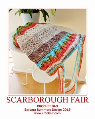 "Scarborough Faire" was a 45 day trading event held yearly during the middle ages in the seaside town of Scarborough, Yorkshire, Britain. This crochet bag design celebrates the colourful, prosperous times of Scarborough Faire. It is an easy intermediate pattern, with colour changes and stitch design changes.