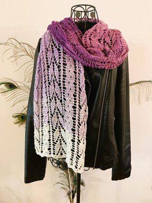 The scarf "Skaia" can be crocheted in any desired width and length. The pattern repeats after a few rows and is quite easy to remember, nevertheless, you should be familiar with front post and back post double crochet stitches.