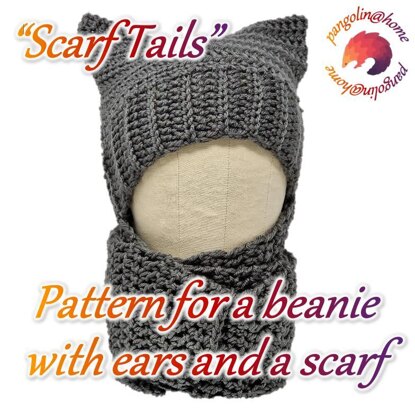 This pattern is for a Beanie style hat with cat ears and a built in scarf, or a Scarf Tails Hat!
