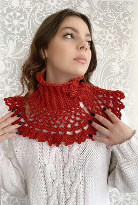 Yarn and hook: 100 gr of Alize Lana Gold DK /Light yarn (color 36/ lot:430480, a 7 mm hook (US J, UK 2) for the foundation and a 6mm hook (US J, UK 4) for the body of the warmer. For the crocheted buttons use a 3mm hook (US D, UK 11). Yarn meterage: 140 meters per 100 gr. (262 yards). Yarn content: 51% acrylic, 49% wool Gauge: 13 hdc stitches in 10 cm / 3.93” Other: Tapestry needle for weaving ends and sewing buttons on. Stitches: chain (ch), chain space (ch-sp), stitch (st.), slip stitch (sl st), single crochet (sc), half-double crochet (hdc), double crochet (dc), back post double crochet (BPDC), front post double crochet (FPDC), 3-ch picot. American terminology used. Measurements of finished warmer: 45 cm/17.7”; bottom part circumference: 96 cm / 37.7”.