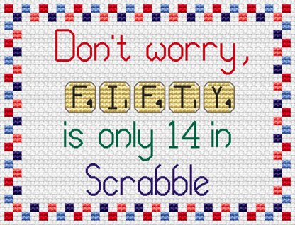 Scrabble Cross Stitch. DIY gift for any anniversary. Easy to follow chart suitable for beginners.\n\nSize: 66w x 50h stitches\nStitched on Aida 14ct - 12 x 9 cm (5 x 4 in);\nDMC Threads: 8 solid colours (no blends)\nUsed stitches: full cross stitch, backstitch\nSkill level: Easy / Beginner\nStitch time: 4-6h\n\nCross stitch pattern in PDF, Instant Digital Download includes: 1) cover page with preview; 2) instructions, symbols key and shopping list (DMC thread colour numbers and estimates, as well as fabric options); 3) two black and white charts, with and without backstitch; 4) two colour charts, with and without backstitch; 5) single page PDF for Pattern Keeper (available on request).\n\nPlease note: This pattern is for personal use only - not for commercial use. You can't make copies of our charts to distribute (either as PDF or printed versions) but you can definitely sell your finished cross stitch work.