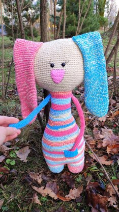 About bunny: The toy is 20 inches (50 cm). Size depends on yarn and hook. multi-colored and white colors