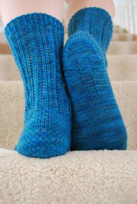 These lace socks might look fancy, but they’re deceptively simple. A two-round lace pattern creates what looks like columns of scullers rowing down the length of your foot. These are knit from the cuff down with a typical heel flap and turn, but the gusset is placed in an unusual location: the bottom of the heel. The result is a slightly curved heel that hugs the foot.