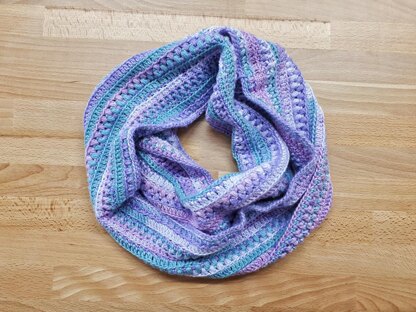 I named this scarf “Sea Breeze” because its texture and colors remind me of the beach when the sea is quiet and flat. The interesting texture of this infinity scarf is created by combining several different stitches, such as front and back loop double crochet and the fun puff stitch. The scarf is crocheted in the round and is wrapped twice around the neck.