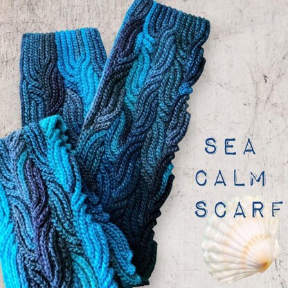 Made in shades of blue, the stitch pattern repeated many times brings to mind a calm sea. It can be worn alone or with The Hazel Crochet Hat or The Hazel Crochet Beret. The Hazel stitch pattern is created using short rows and slip-stitch variations smoothly integrated into the ribbing edges. The scarf worked vertically, flat, in one piece. Repeats of the stitch pattern are structured to create a double-sided scarf textile. You can choose between two variations: a classic scarf with straight long edges or a scarf with one wavy decorative edge.