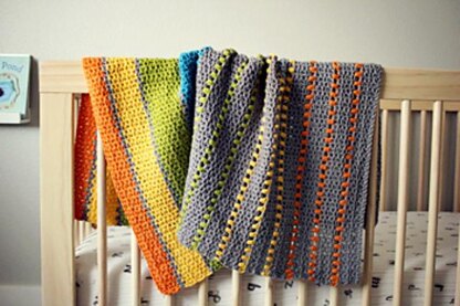 This modern baby blanket crochet pattern is crocheted in a textured V-stitch and colorful puff stitch and is a completely reversible blanket pattern.