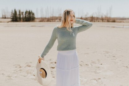 The Seaglass Sweater is a top-down, raglan sweater using only chains and single crochet stitches to create this textured fabric. This is a great long-sleeve top to wear in the spring + summer, worked in a chainette-style yarn from Lion Brand called Low Tide. Chainette yarns are great for to crochet with because there is no splitting to worry about!