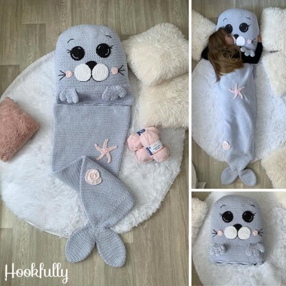 The Seal Crochet Sleeping Bag and Pillow Pattern allows you to create a plush seal that transforms into a cozy sleep sack, ideal for toddlers to tweens. This fun and functional design is easy to crochet with detailed instructions and photos, making it simple to clean and store with its removable inserts. The pattern includes steps for basic crochet stitches and some sewing, and offers two blanket lengths to accommodate different ages. It is written in USA terminology, spans 19 pages, and features gauge details, progress photos, and finished sizes.