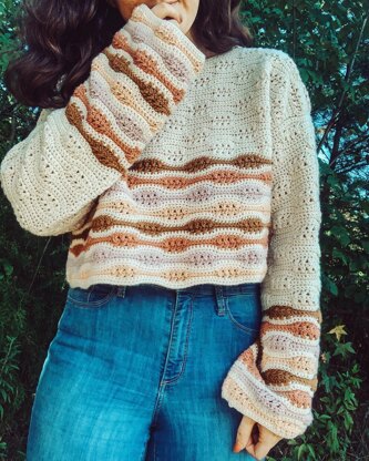 The Seasons Change Sweater is an oversized cozy sweater with plenty of room for customization. It’s a sweater I dreamt up that would play with color but in a subtle and simple way. The pattern is written for a cropped fit but length modifications are included throughout (so you can tailor it to fit however you choose). With a wide boat neck perfect for layering, gorgeous textural stripe accents and a simple - easy to remember stitch pattern, this sweater is as fun to stitch as it is to wear!