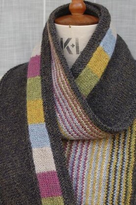 This reversible scarf mixes up blocks and stripes to make a barrier against the cold. The two-layer design keeps it neat and elegant, while making it super-cosy in winter. In soft Alpaca, it will keep out icy chills. The colourwork is all simple stripes, no intarsia. You will also need to be able to pick up stitches and work a 3-needle bind off. The pattern works for any good 4ply/fingering to sportweight yarn since it is worked to measurements, not row counts.