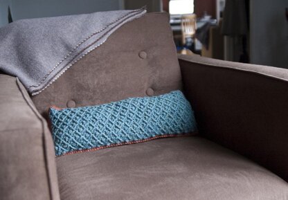 Front of pillow is worked in traditional crochet, while back is stitched using a variation of Tunisian simple stitch.