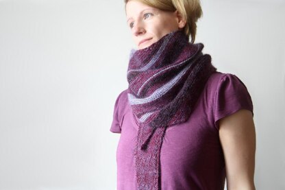 A mesmerizing cadence of stripes sweep through this groovy garter stitch shawl – it's a fantastic showcase for your favourite color combinations, and stripes never go out of style. Bulky yarn knits up in a flash, or opt for a lighter DK weight yarn for cozy drape.