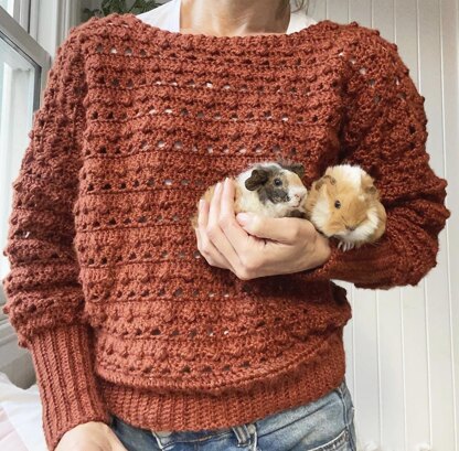 The Seedlings Sweater is for all seasons. It features dc/tr stitch, puff stitch, and X stitch as well as scblo ribbing technique. The pattern is in US terms. It is designed to sit just below your waist and be looser at the shoulders. There are a few suggestions for varying body shapes. It includes seven sizes from XS - 3XL. I suggest dropping down a size or hook size if your gauge is looser,