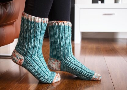 Crochet ribbing works double time creating socks that are both super-stretchy and exceptionally warm.