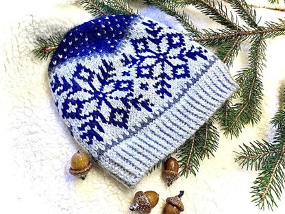 This pattern contains instructions to make this hat two ways. The first has just the Selbu roses/snowflakes with a plain crown. The second adds a sprinkling of decorative “lice” to the crown. Yes, they’re really called lice! It’s a traditional Norwegian motif used extensively in warm woolen knitwear that looks like little insects have landed on the top of your hat. So cute!