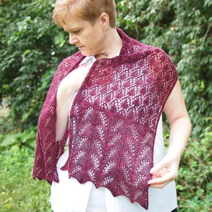 Yarn: Dragonfly Fibers Squishy Lace, 100% Superwash Merino, 870 yards/113 grams. Sample knit in Wine Country. Sample used approximately 600 yards.
