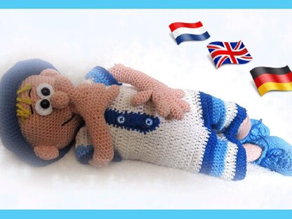 Simple pattern if you know how to crochet Magic Ring, chain , slip stitch, single crochet, half double crochet and double crochet. * This manual is available in English, Dutch and German. * The Doll is 45 cm (hook size 3). * The manual is very detailed and contains many photos.* If you have any problems and / or questions about my instructions please contact me by email.