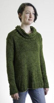 Materials Tahki Yarns “Tucson” (108 yds/50grs; 52% cotton, 48% wool): 7 (8, 9, 10, 11, 12, 13) balls #04 cactus Size US9 (5.5mm) and size US10 (6.0mm) knitting needles or size to obtain gauge. Size US9 (5.5mm) 20” circular knitting needles for trim.Tapestry needle