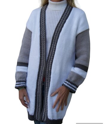 This long cardigan can be made in any circular knitting machine with 46 or more needles!