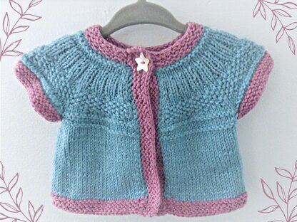 A quick and sweet knit and a great introduction to top down knitting. This yoked cardigan features a couple of simple patterns on the yoke for added interest. It is very straightforward so suitable for beginners too. The design is perfect for an extra layer any time of the year and with 6 sizes it is a pattern which can be used again and again too! All you need are 2 - 4 50g balls of double knitting yarn in the main colour, 1 50g ball of a contrast colour and 1 button.