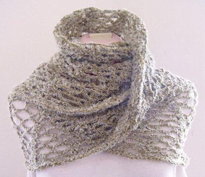It is a crochet in the round infinity scarf. I deliberately make it twist once but it came out with two twists. You can make it as long/short or wide/narrow as you desire. This pattern will work with any yarn and colours. Gauge is unimportant.