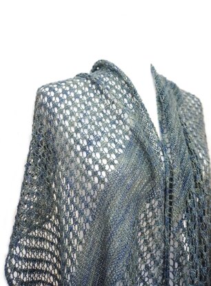 This rectangular stole begins at one corner with three stitches, then increases on each side to create a triangle. The main section is worked on the bias with increases on one side and decreases on the other. To finish the stole, decreases on both sides create the final edge. Instructions are included for modifying the length and width of the stole to your taste.