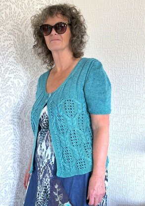 Serotinal (this term comes from the Latin adverb “Sero” which means late and describes the period between mid summer and autumn) is a stunning summer cardigan with lace and cable detail panels to both front and back, ideal for that late summer cover up. Worked on straight needles, sleeves are worked from the sleeve caps down using short rows and a 1 row buttonhole technique makes this an extra ‘special knit’.
