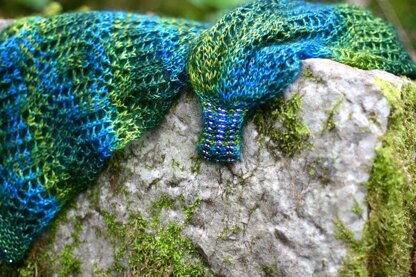 This scarf is for all the knitters out there who love scarves but hate trying to keep them on! This delicate lace scarf has an integrated beaded loop that is perfect to hold your scarf in place and creates a stunning decorative finish.