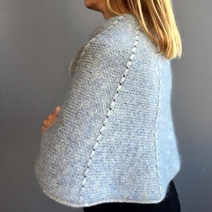 Seven Days Shawl is knitted in stockinette stitch using mainly two different types of yarn in contrasting colors held together. Two threads of finnish fingering wool and one of silk mohair to create a rustic wool surface with some mohair flashes. Its seven wedges are separated from each other by a succession of wraps worked with one color yarn only, like the i-cord finishing that runs clock-wise along the entire edge. A sort of short rows worked with a revised turn and slip method that gives it either the half-circle shape and the particular decoration of the “eyelashes” and holes.