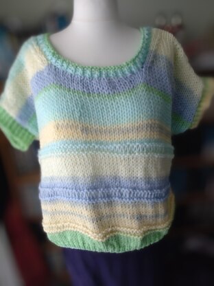 This is a very simple top - a loose knit top which will see you through summer, even if you have to later it with a shirt or t-shirt.